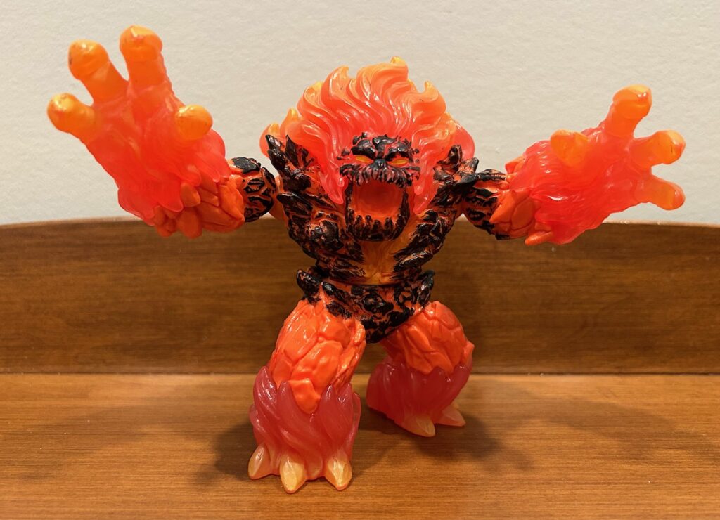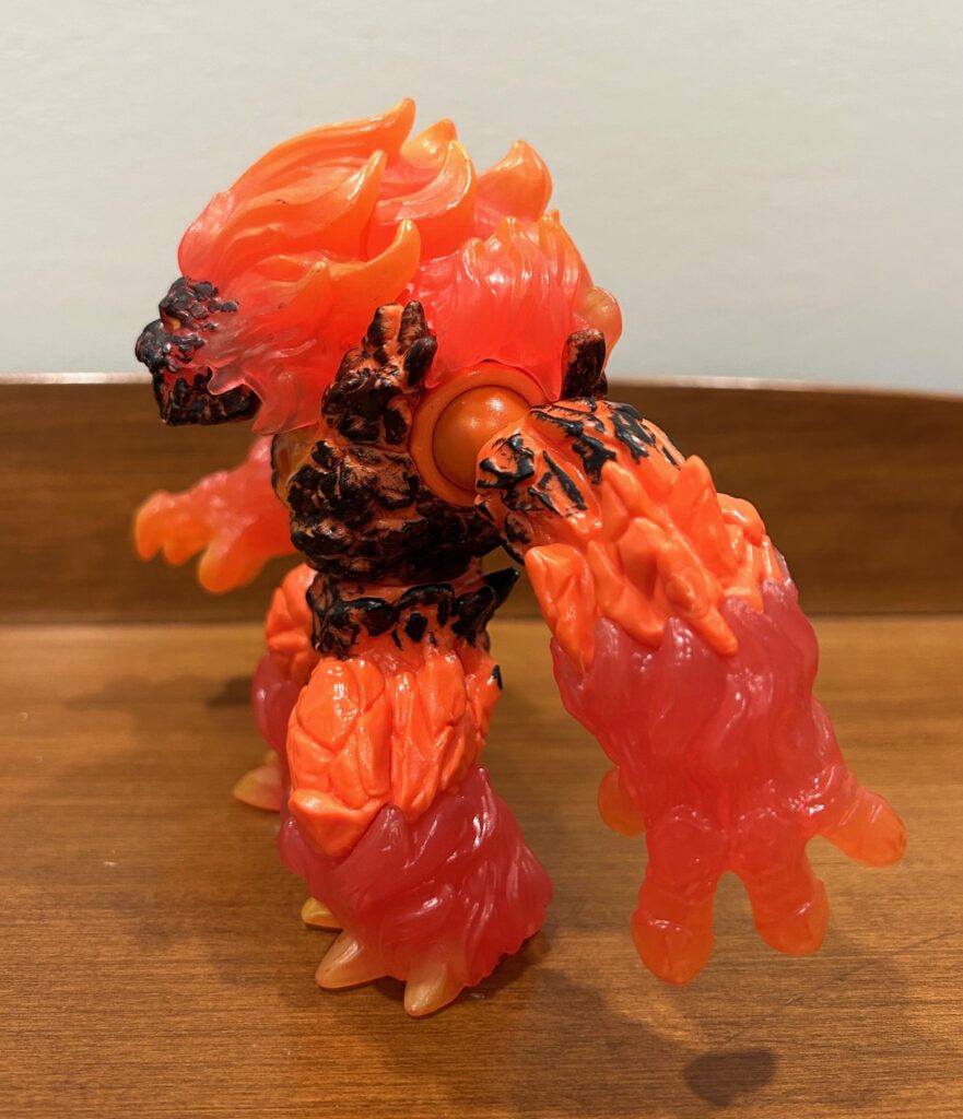 The lava smasher’s lower jaw opens to 30 degrees, his arms are ball-jointed at the shoulders, and his waist rotates 360 degrees. He is quite, quite durable too, and has seen his share of intense battles in the bedroom or the hallway or on the stairs.